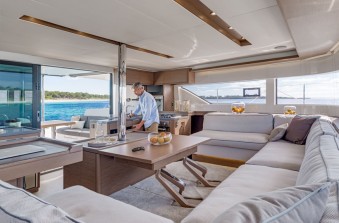 This is a large, modern yacht with plenty of headroom and light throughout. There are many areas for relaxing and Lone Star Lagoon has been designed with guest comfort in mind. The light filled salon and galley are the heart of the boat. For outside enjoyment there is an expansive fly bridge lounge and a large cockpit which also has a fridge and outside sink. Onboard generator and air conditioning ensure your comfort when you are below decks.