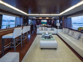 Tail Lights comfortably accommodates 10 guests in five staterooms with 2 additional berths available in Pullmans, subject to owner approval. Formal dining accommodates 10 and up to 12 upon special approval, dining is family style. Tail Lights features numerous comfortable outdoor lounging and alfresco options from the bow, flybridge to the aft deck.