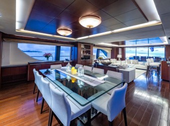 The spacious main aft deck offers al fresco dining for up to 10 and is, yet, another fabulous area for enjoying the outdoors in stylish comfort.