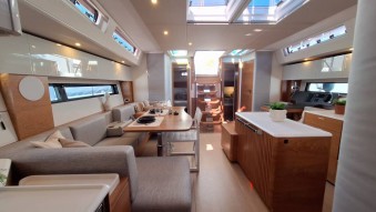 Volare accommodates guests in four spacious cabins plus three toilets (heads) with showers, comfortably hosting up to 12 people (8 berths plus 2 plus 2 in the salon). It bright, elegantly styled interior provides a superb space to relax, entertain, or dine while taking in beautiful coastal views.